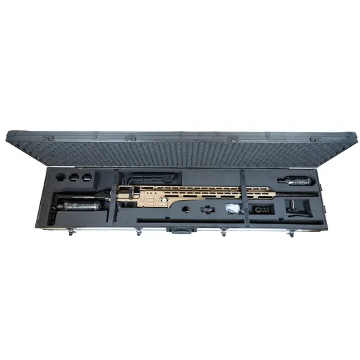Let op: De MCAR wordt geleverd in een koffer die lijkt op een wapenkoffer, maar het is een verzendkoffer. Helaas past het volledig geassembleerde geweer (inclusief wangstuk, schouderstuk en mondingsrem) niet in de meegeleverde koffer. Omdat u een dergelijk mooi wapen natuurlijk veilig en wettelijk moet vervoeren, is een grotere buitenmodel wapenkoffer nodig. Na wat zoekwerk hebben we een passende koffer gevonden, die tijdelijk GRATIS bij de aankoop wordt meegeleverd!