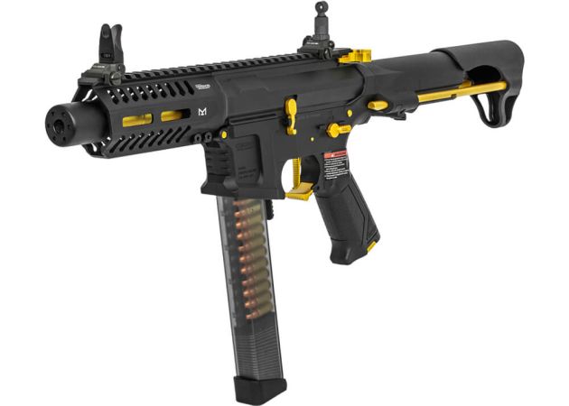 De G&G Armament G&G ARP9 Stealth is een compacte en wendbare AEG die perfect tot zijn recht komt in snelle CQB‑scenario’s. De combinatie van een slagvaste polymeer body en een aluminium handguard met M-LOK zorgt voor een lichtgewicht maar stevige constructie, terwijl de subtiele goudkleurige accenten en de meegeleverde SS‑50 mini suppressor deze replica een unieke, stijlvolle uitstraling geven.
