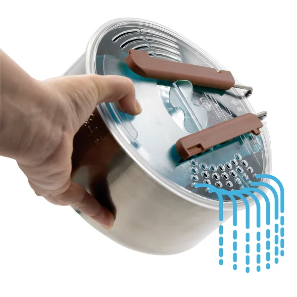 Het slimme ontwerp bevat een vergiet‑deksel en een handgreep die ook als klem dient, waardoor koken en serveren in het veld eenvoudig en veilig is. De kookset is food safe, BPA‑vrij, bestand tegen deuken en barsten, en houdt geen smaken vast of geeft ze af. Na gebruik is de set eenvoudig te reinigen; hij is vaatwasserbestendig, maar voor optimale levensduur wordt handwas aanbevolen. Dankzij herbruikbare en recyclebare materialen is dit een duurzame en praktische metgezel voor elk buitenavontuur.